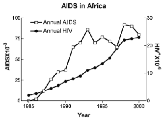 By 2001, Africa had reportedly generated a cumulative total of 1,093,522 AIDS cases. [26] But, during this period the population of Sub-Saharan Africa had grown (at an annual rate of about 2.6% per year) from 378 million in 1980 to 652 million in 2000. [1] Therefore, a possible, above-normal loss of 1 million lives to AIDS is statistically hard to verify for two reasons: 1) the loss would be dwarfed by the overwhelming, simultaneous gain of 274 million people (the equivalent of the population of the USA), and 2) the African AIDS-defining diseases are indistinguishable from conventional African morbidity and mortality. [3]