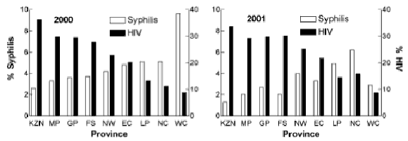 syphilis & HIV prevalence among antenatal attendees in South African Provinces.